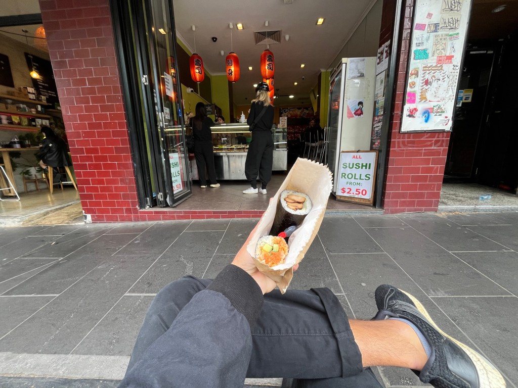 I was directly next to the cheapest sushi roll shop in Melbourne, so I thought I’d treat myself to two very cheap sushi rolls.