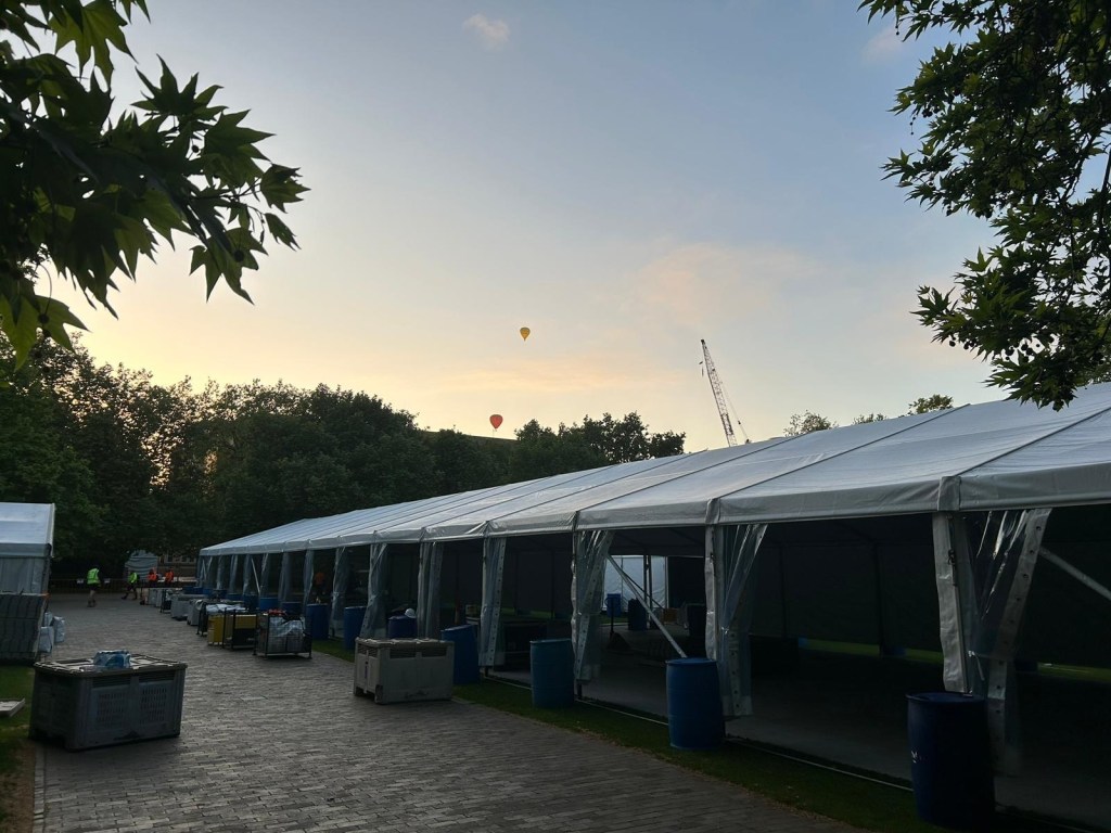 We started off the day putting on walls to the final marquee. We then spent the next while carrying metal legs into the marquees. These legs were for exhibition stands… and there was a lot of them.