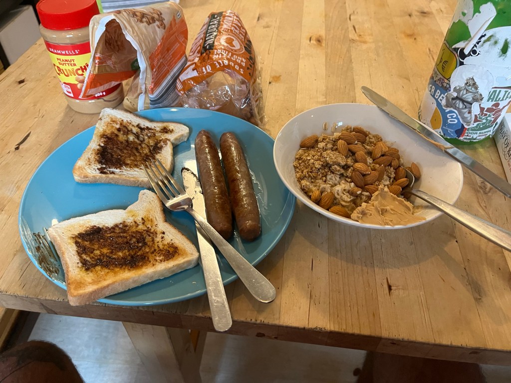 As I near leaving, I’m coming down to the end of my groceries. So I’m having to make do with what is left. But I think I have the perfect amount to last till Tuesday!