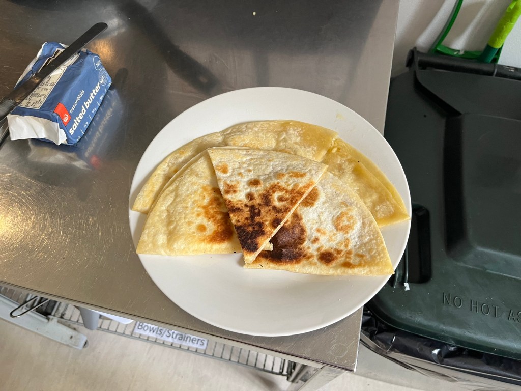 I ate lunch around 1pm, cheffing up some quesadillas. And then I promptly scurried back to the TV room to devour more of my book.