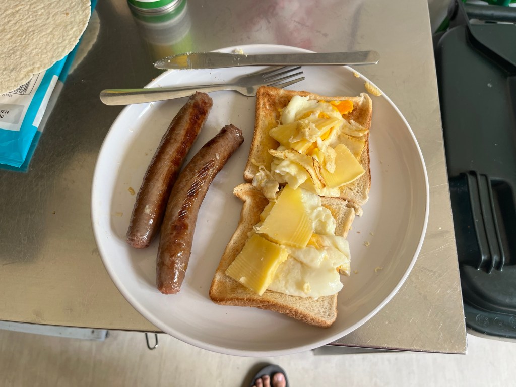 Yesterday, there were eggs on the free food shelf in the hostel. I guess someone left before finishing their eggs, so I cooked up my first fried eggs in a while!