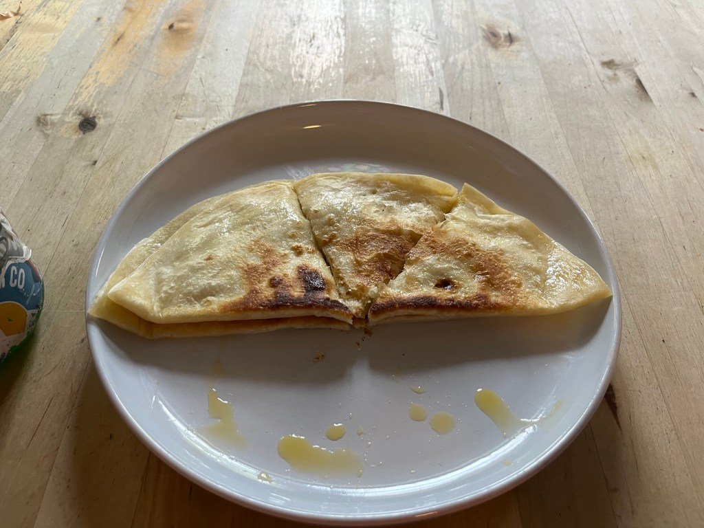 When I woke up, I was hungry. So I headed down to the kitchen to make some food with the groceries I had left… which meant, quesadillas time!