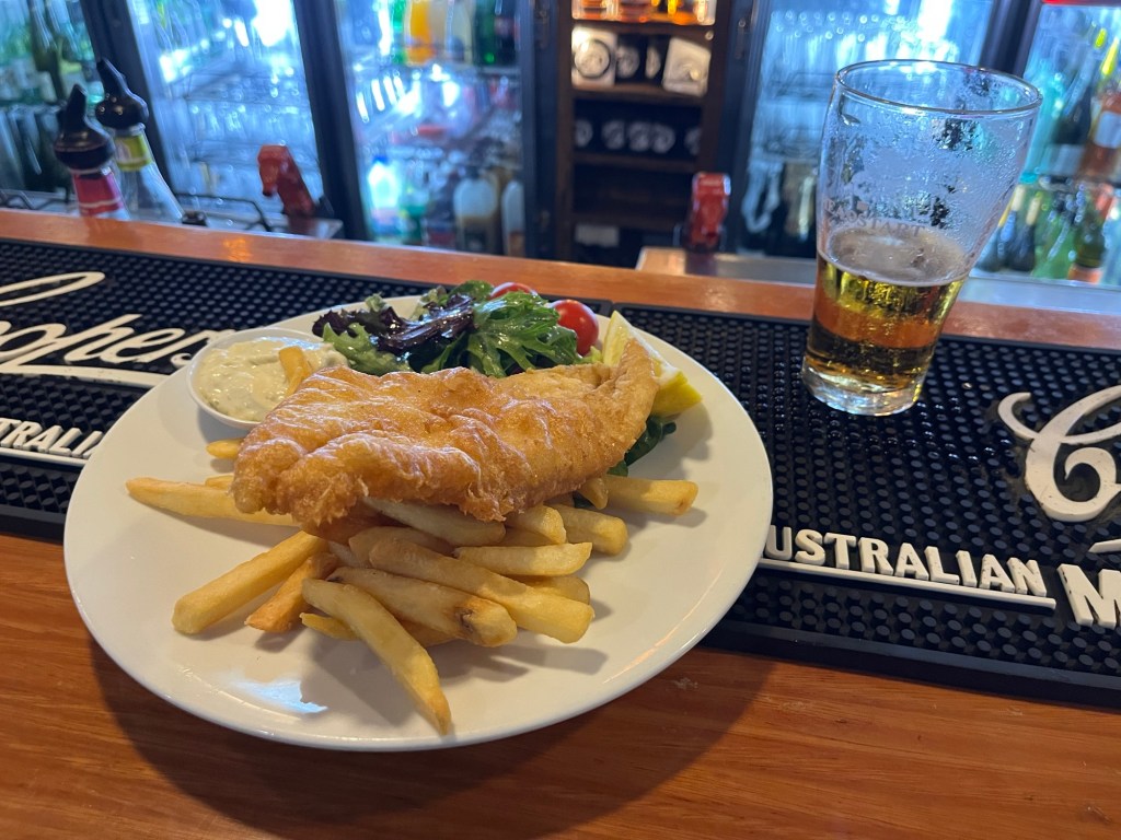 I got myself a Carlton Dry and a plate of fish and chips. I wanted a filling meal for my first real meal of the day!