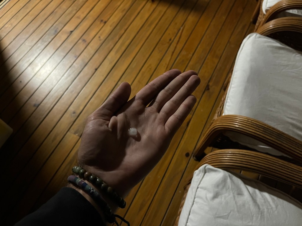 Eventually the storm did hit and it was a loud one! I went to investigate on our balcony and it turned out it was hailing!! It might be a warm night, but I guess the clouds were nice and cold.