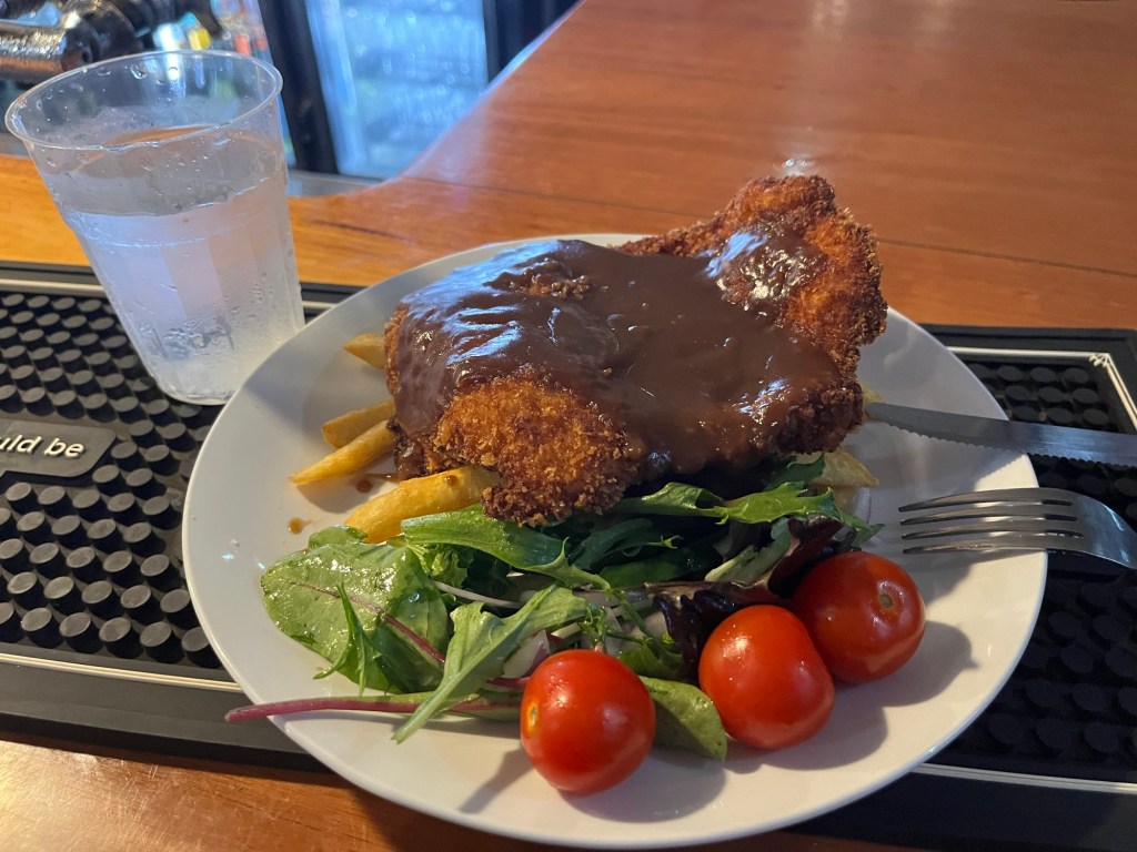 8pm rolled around and I realized I was in for the rest of the night. So I ordered a cheap meal and got myself a big chicken schnitzel, which so far is my favorite meal at the restaurant.