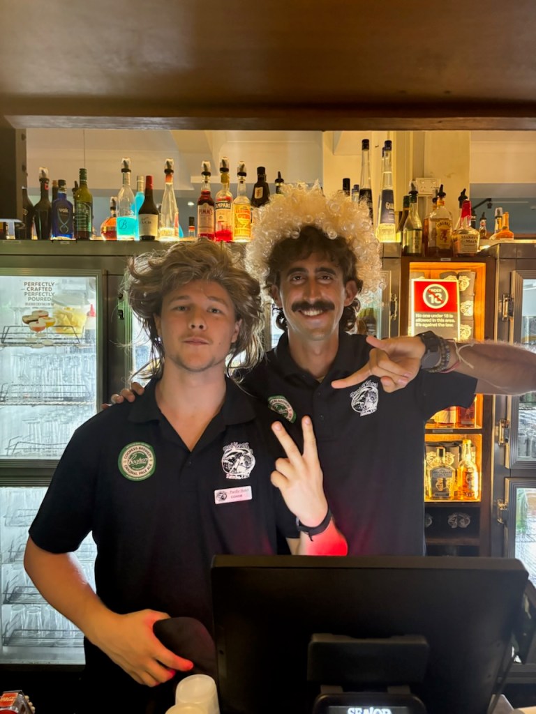 I walked into a very busy bar and got right back to work! There were plenty of familiar local faces and of course lots of tourists too. Eventually the night crowd came rolling in and my friends Holly and Rachel were back!