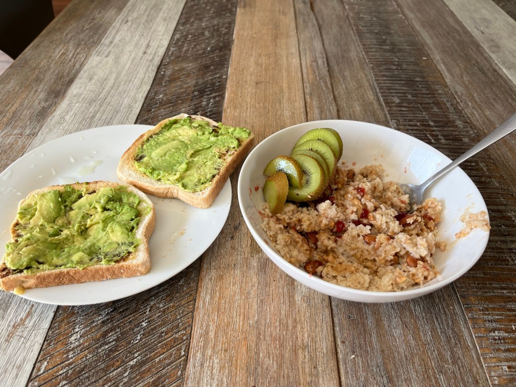 I ate my usual breakfast of oats and avocado toast and then had just enough time to read for 15 minutes before heading out for work.