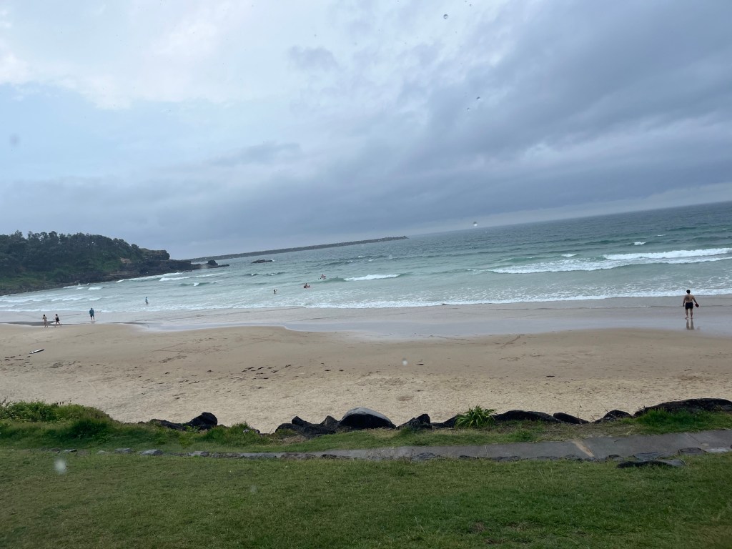 There was a group of foreign guys (probably around my age from some part of Asia) out enjoying the beach in the rain too. They were playing some fun made up games, one of which was kicking their flip flops as far as possible and the furthest was the winner. It was very wholesome watching them get super excited and excited for each other while the shoes went further and further.