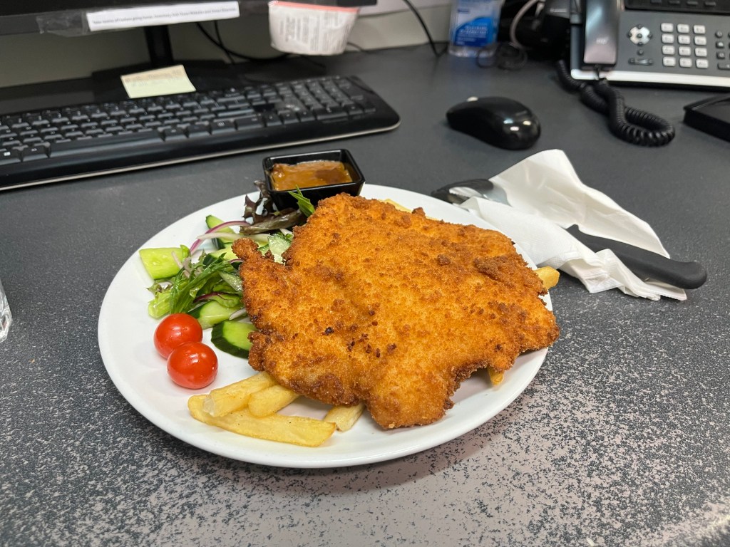 I had a wonderful chicken schnitzel, which is so far my favorite meal at the hotel. But originally my shift was going to end at 9pm, and as always, my hopes of staying on later panned out!