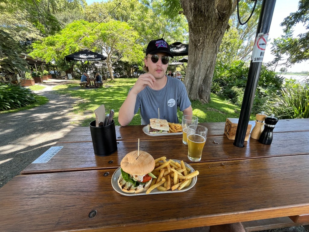 We had a beautiful view of the Clarence River, which is known for having its fair share of sharks in it. I still haven’t seen one yet! There were also a ton of water lizards roaming around and a tree behind where I was sitting was filled with flying foxes… aka very large, noisy bats!
