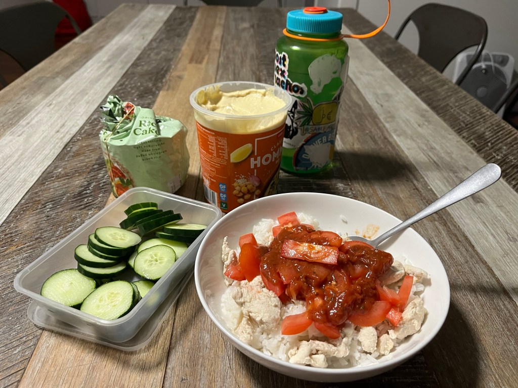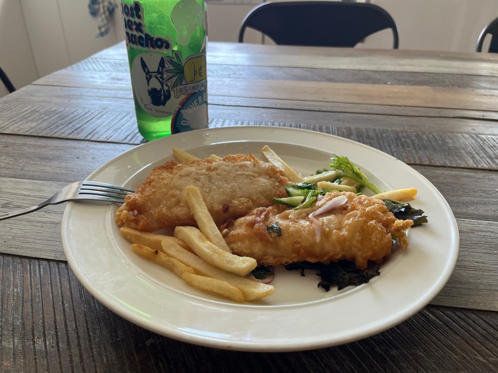 I had the leftover fish and chips that I got yesterday night for free. Can’t complain about a free meal! Especially since I was still waiting for my grocery delivery to arrive.