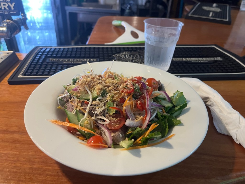 This was the best thing I’ve had on our menu yet! Not only was having wagyu a wonderful treat, but this salad had such a familiar flavor to it. It reminded me a ton of one of my favorite Thai/Laos dishes, Laab! But with much higher quality meat. It was such a pleasant surprise and brought back a flash of wonderful memories from my time in SE Asia. Specifically, when I was in Bangkok with Nico and he introduced me to it. Also the many times I ate the dish in Koh Tao.
