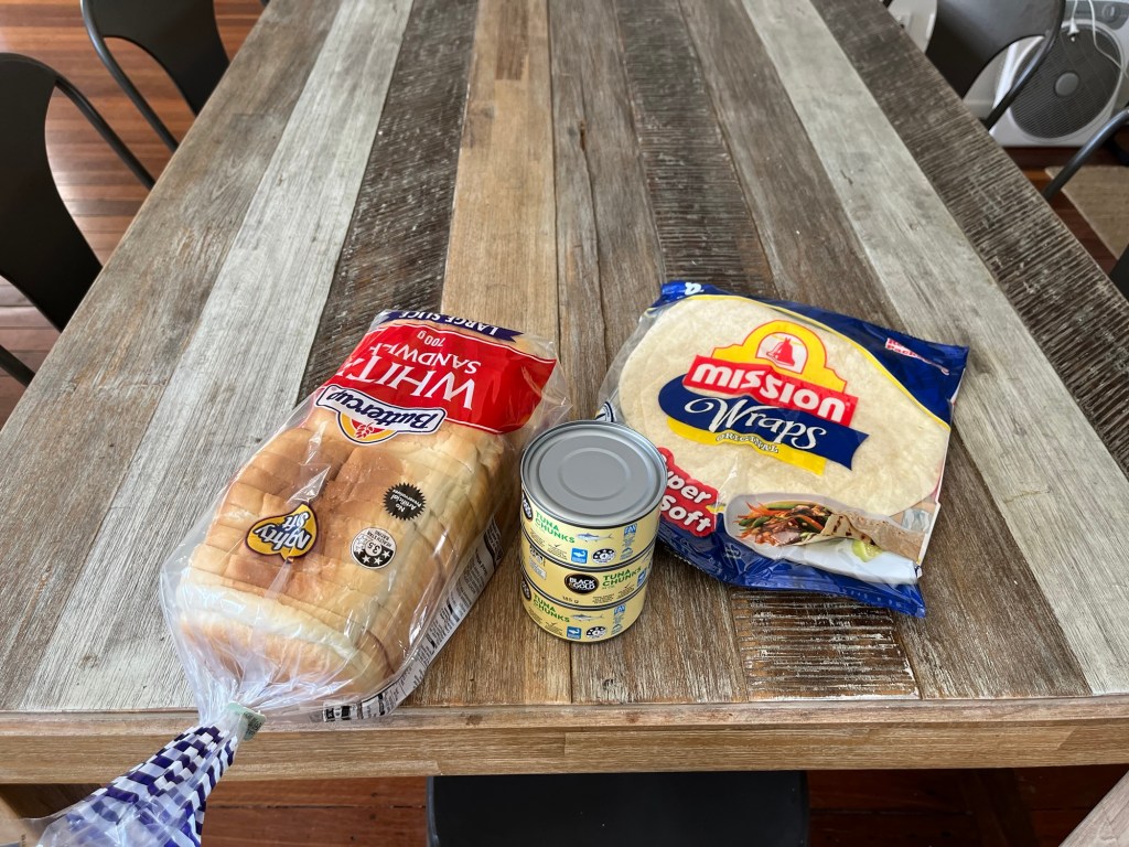 Around noon, I set out into the sunny day on a little errand. I ran out of bread, wraps, and tuna, so I walked over to the local grocer to get these few items.