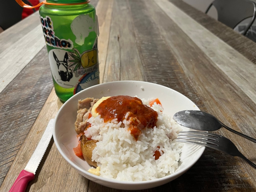 For dinner, I heated up the leftover roast, cooked up some chicken to add to it, and made some rice as well.