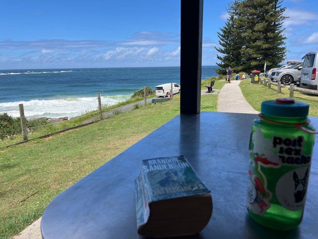 I found a much better area to sit in too, a pavilion overlooking the ocean with a bench, table, and backrest, it was perfect! Especially with the wind blowing off the ocean, it made for a great spot to read and enjoy the day.