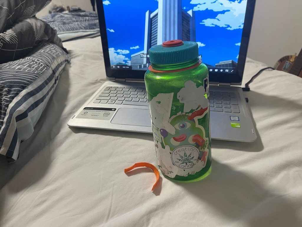While traveling through SE Asia by motorbike, my waterbottles strap started slowly breaking. I believe, by Thailand part of it finally broke and now… on this fateful day, it finally fully broke off. But, the cap still works, so nothing to worry about! I might get a new one, or I might just leave it… only time will tell!