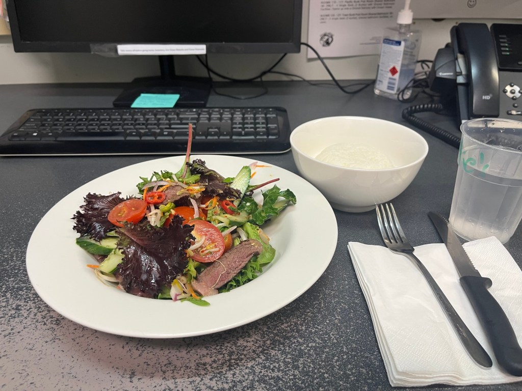 For dinner, I treated myself to the Thai wagyu salad and enjoyed the AC of the office while I relaxed for 30 minutes.