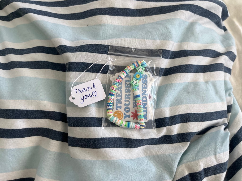 But this trip up the hill wasn’t for nothing. One of the other office ladies daughters makes bracelets. I’ve been wanting to get one but they are always way too small! But, finally my complaints were heard and I had a bracelet made specifically for me waiting for me in the office.
