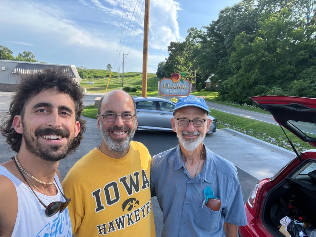 My Uncle Ken, who I hadn’t seen in many years, was coming through town to pick up my dad for a roadtrip to southern Illinois. I last minute decided to join them on the adventure! We piled into my uncles Mini Cooper and I squeezed myself into the very small backseat. It was almost like a clown car since all of us are fairly tall men.