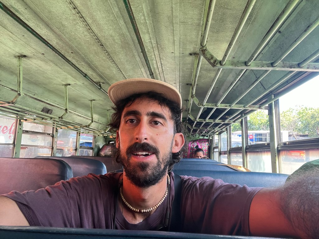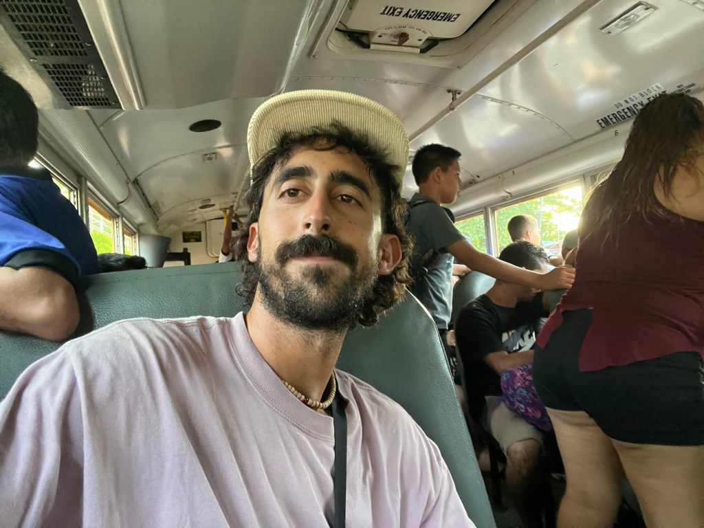 I sat in the AC dorm room for a bit waiting to meet up with Maya and Jakob. They suggested a bar overlooking the ocean for sunset and I was very game for that. Now my hostel was 10 minutes out from the city center. The host had told me there was a bus that would take you into town for $0.25 and I went to the street to find it. It took about 10 minutes but a school bus finally showed up and I handed the driver a dollar coin… and he accidentally gave me a dollar back in tiny change (but I didn’t realize this till I was paying for the beer I had later).