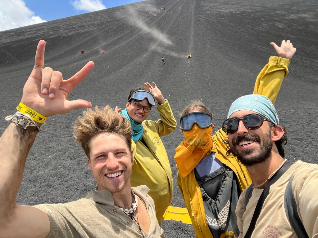 After the hike, it was time to get to the main event, the volcano boarding! To be honest, it’s more like volcano sledding, more than boarding. We got instructed in Spanish, and they told us we’d get instruction in English, but it never happened… so I watched as everyone went down the very steep volcano, geared up hoping that no dust and rocks got on them.