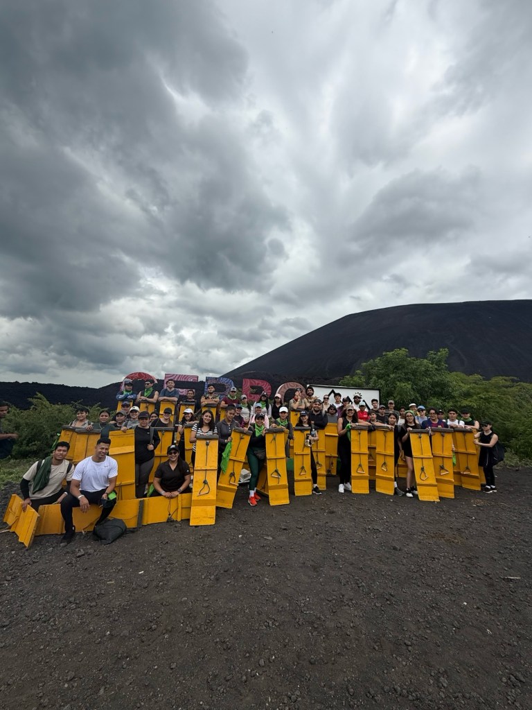 After a briefing, we hopped on a chicken bus and headed 45 minutes away to the volcano! We were supplied long yellow outfits, snowboarding goggles, and a board. Once we got situated, it was time for a hike… I honestly didn’t think about it before hand, but we had to hike up the volcano while carrying our boards, which were pretty heavy. You could pay $5 for a porter to carry it, but I was determined this hike to do it myself.