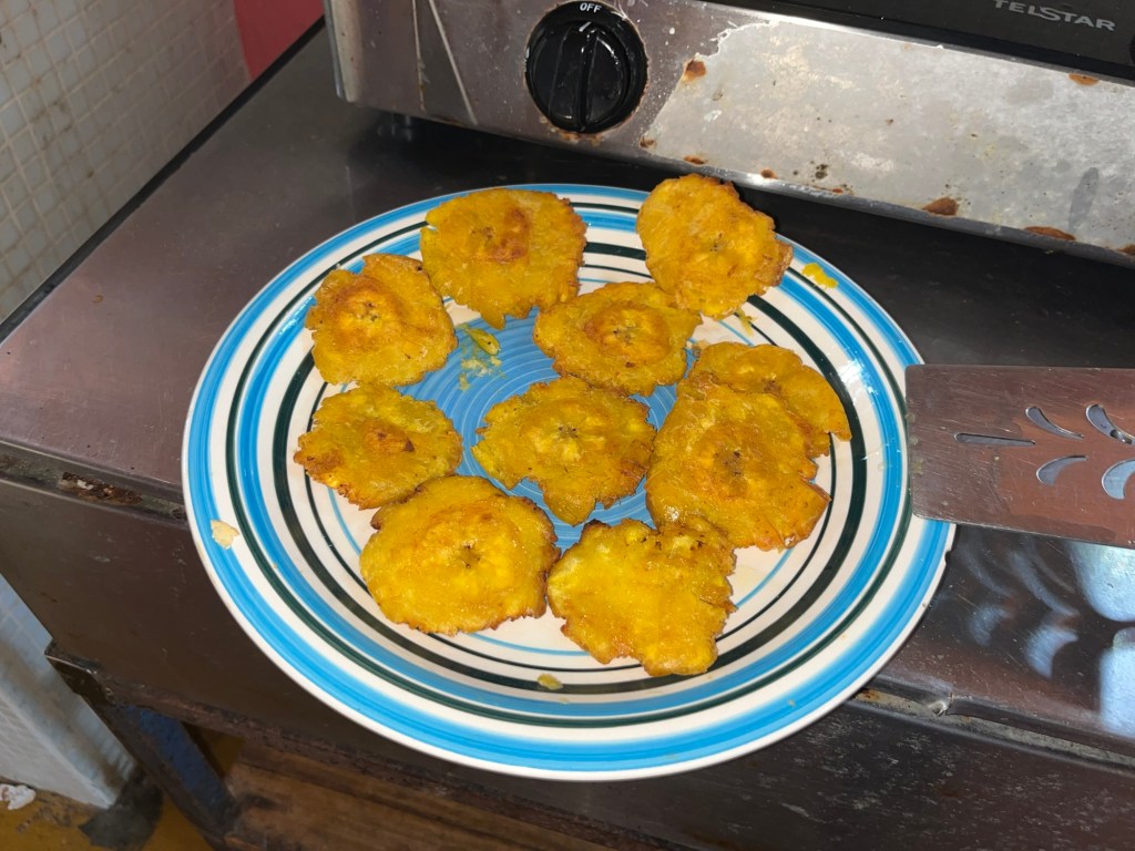 I got back and made myself lunch. I took another stab at making tostones (or patacones) and they turned out much better this time, I skipped the putting them in salt water, but I’ll try that method again sometime.