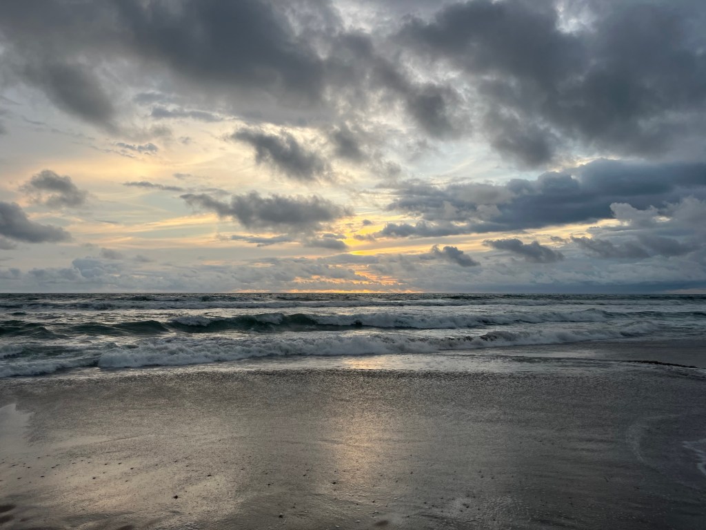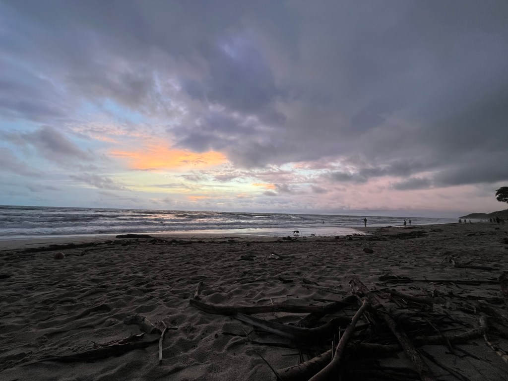 I ate lunch and then spent the remainder of the afternoon playing guitar in the treehouse. The sun started pouring into the treehouse and as it neared sunset, I decided to go to the beach and see if there’d actually be one today! There’s been a lot of rain lately so I didn’t have my expectations high.