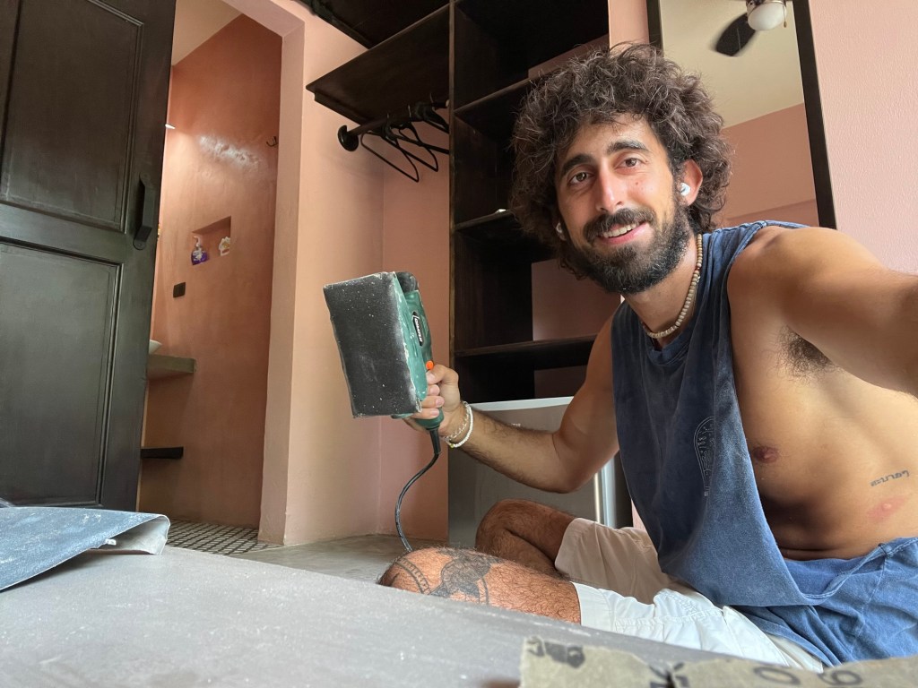 Especially because the next task was going back to the studio rooms and sanding off the dirt again. I was an hour into this task when Dennis came to check on how things were going… it was fair to say I felt like I was wasting my time because not much progress had come from all the sweat I was perspiring.