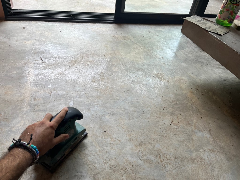 That phone call made the time fly by and we were on to the next task… which was more sanding of floors. This time sanding concrete floors to try and remove similar gunky marks. This was much harder and I had to take the electric sander to it. By the time 1pm rolled around, it didn’t feel like I even put a dent into the cleaning. But the day was done!