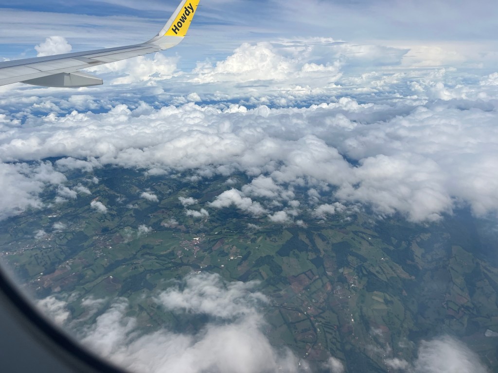 I finally started boarding just around noon. I had a window seat and was sitting next to a very friendly woman from Cuba who lived in Orlando. We had a really nice chat in Spanish as we waited for the flight to take off. We talked about our time in Costa Rica, her kids, traveling, etc.
