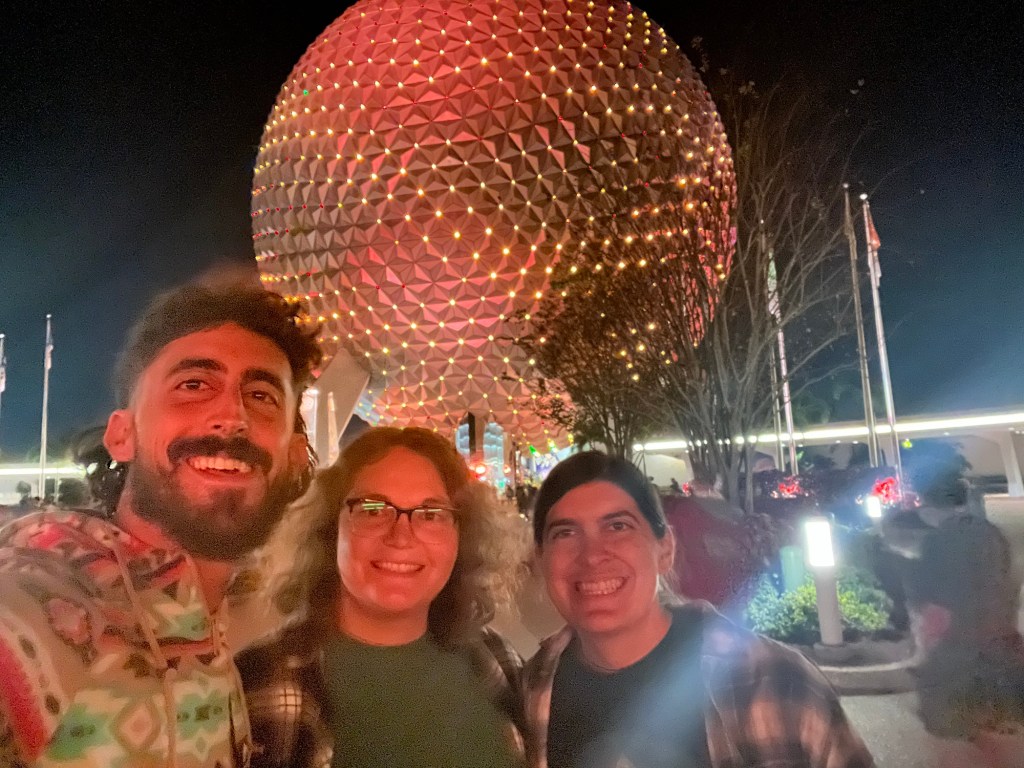 Not long after they got back home, we decided to head to EPCOT, one of Disney World’s theme parks. There’s a Guardian of the Galaxy ride, Cosmic Rewind, that Sophie and Paige said was awesome, so we went straight to it when we got there. There’s line time was 85 minutes, so we decided to go to the Spaceship Earth ride first, which is inside of the geodesic sphere of EPCOT. It’s a nice, slow ride going through earths technological progression.
